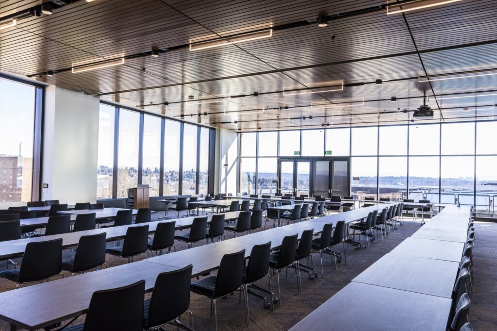 Like the rest of the Gates building, the Zillow Commons and its outdoor patio are ADA-compliant and accessible by elevator.